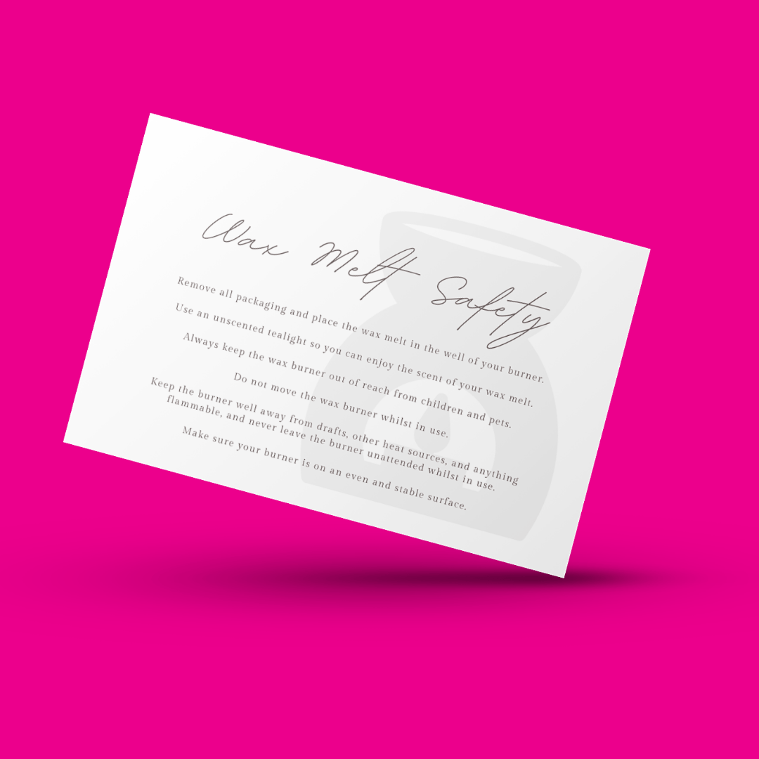 One side is complete with care and safety tips, and the other is a thank you note with your business details added.